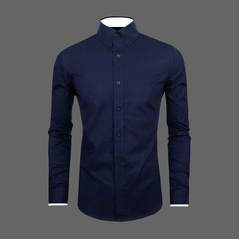 Troonpair Men Solid Formal Blue Shirt