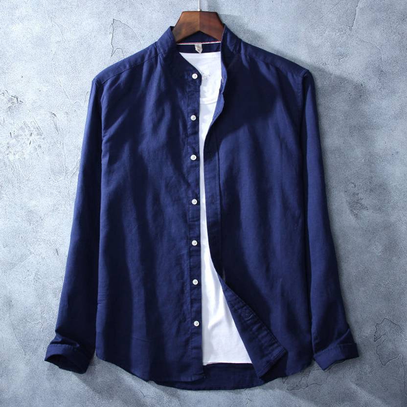 Qlonz Store Men Solid Casual Blue Shirt