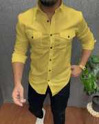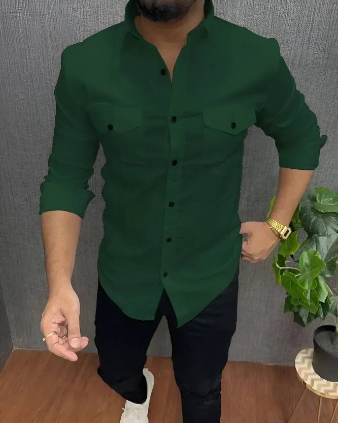 Men Regular Fit Solid Spread Collar Casual Shirt