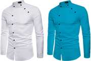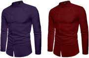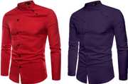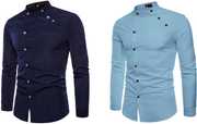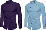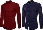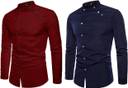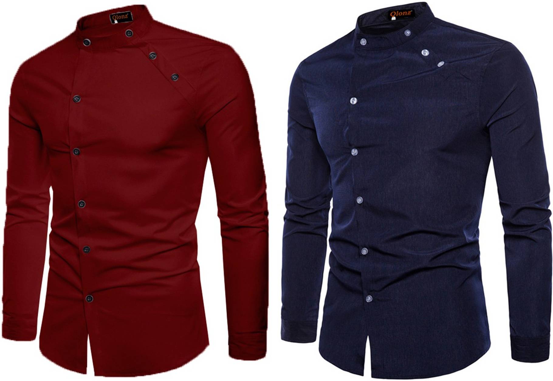 Qlonz Store Men Solid Casual Blue, Maroon Shirt (Pack of 2)