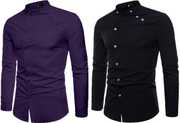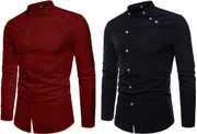 Qlonz Store Men Solid Casual Maroon, Black Shirt (Pack of 2)