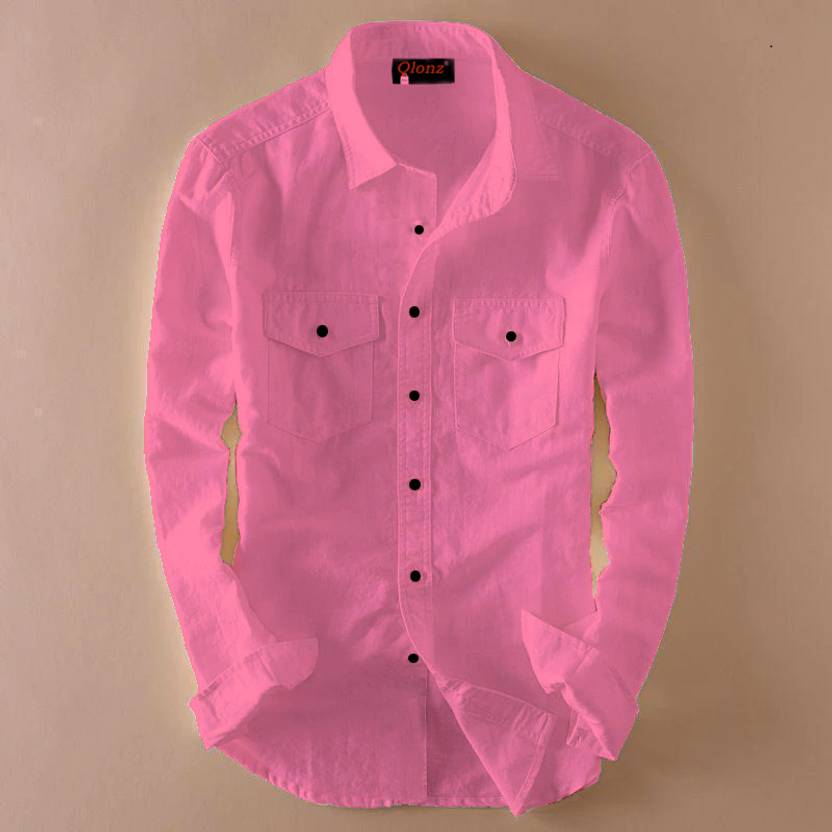 HouseOfCommon Men Solid Casual Pink Shirt