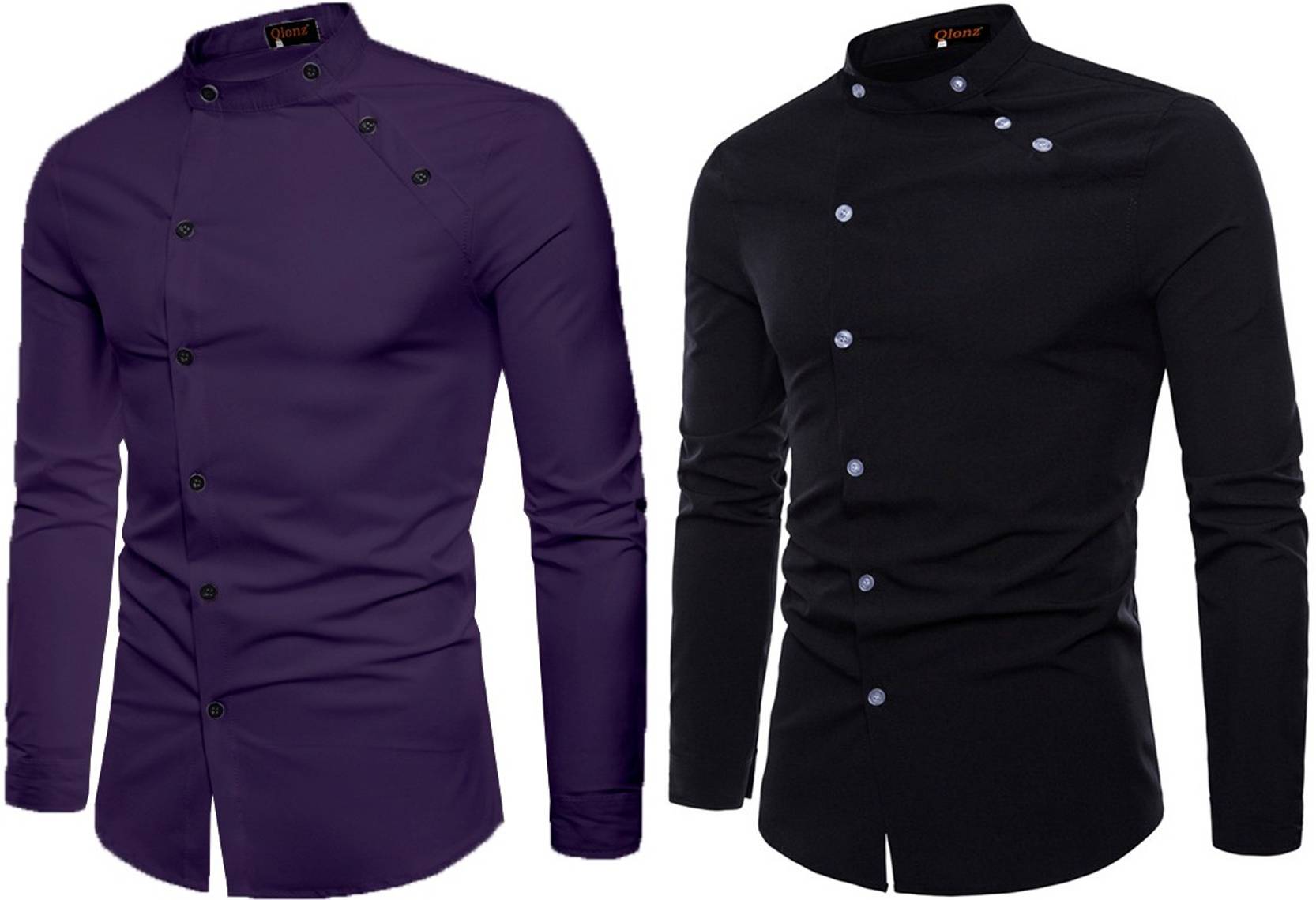 Qlonz Store Men Solid Casual Purple, Black Shirt (Pack of 2)