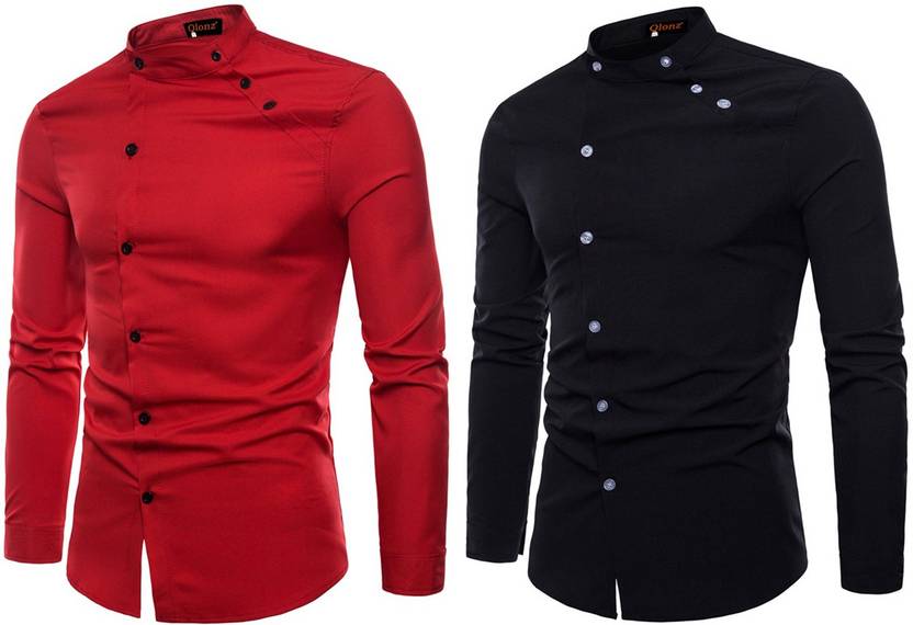 Qlonz Store Men Solid Casual Red, Black Shirt (Pack of 2)