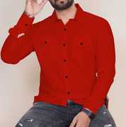 Men Regular Fit Solid Spread Collar Casual Shirt