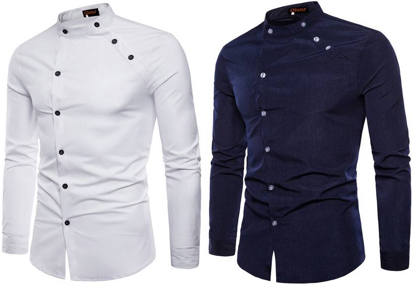 Qlonz Store Men Solid Casual White, Blue Shirt (Pack of 2)