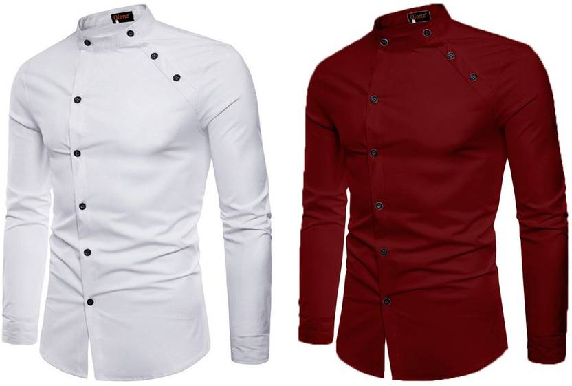 Qlonz Store Men Solid Casual White, Maroon Shirt (Pack of 2)