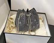 POTLI STYLE SLING BAG with Free Keychain Material: Rhinestones Crystal Clutch made of polyester and high quality shinny rhinestone, stylish and sturdy. Dimension: 6.3*3.9*5.1in / 16*10*13cm. Please kindly note the drawstring metal chain strap is adjustable, but it can't removeable. The chain is easy to adjust. This is MINI size bag. The rhinestones bucket bag can fit a 6.5 inch mobile phone, pls consider the bag size before your order. Design: This mini evening bags is with pearl pendant, made of high quality soft shinny rhinestone, with the buckle can be opened and closed smoothly. Fashion silver, blue and black color is good to matches with different party prom wedding wears. Multipurpose: You can use the rhinestones drawstring bucket bag as mini evening clutch, crossbody shoulder bag, wristlet wallet etc. Drawstring design, easy to put your cards, keys, cell phone, cosmetics ,mirror in your bag. The full rhinestones crystal evening handbag can be used in many occasions,