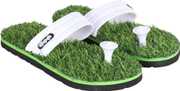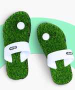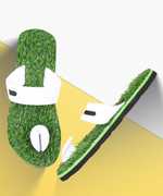 Grass Slippers give you that relaxed, barefoot experience of walking on real grass-wherever you are. This head-turning footwear is lined with faux turf that looks realistic, feels soft, and is surprisingly comfortable. Each step is like a grassy, mini foot massage that mimics walking on the real thing. And also like the real thing, you can hose these down to clean them. The slippers are generously sized and run a little wider than usual-to better show off all of that greenery from the side. The grass will conform to your feet with wear, but just a little fluffing with your fingers will get the blades back into shape.