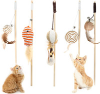 This cat toy set comes as a set of 5 teaser wands that have removable bells. You can add or remove the bell from the toy set at your convenience or as per the preference of your furry friends.