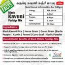 | Ingredients | - Black Kavuni Rice, Horse Gram, Green Gram, Barlie, Pepper, Cumin, Fennel, Curry Leaf, Garlic Powder.