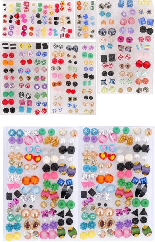 QRAFTINK Mix color & design small Design Stud Earrings With Plastic Back for Girls and Women Combo of 100 pairs Quartz Plastic Stud Earring Plastic Stud Earring