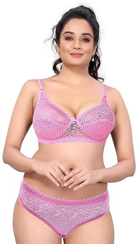 Women's Bridal Floral Lace, Underwire, High Cut Thong Honymoon Lingerie Bra Panty Set Adjustable Straps for Easy Wear, Lightweight and Breathable Material Pack of 1 Pink