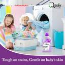 Qssiy Baby Liquid Detergent, Babies are more susceptible to illnesses, and protecting them from germs is the topmost priority for parents. Qssiy Germ Free Baby Laundry Wash is specially formulated to effectively wash away 99.99% of germs, removing stains and unpleasant odour from soiled clothes, bibs, bedding, and towels. The strong antiredeposition action helps prevent dirt from being redeposited and keeps your baby’s clothes, bibs, bedding, and towels fresh post wash. This cleanser with naturally derived cleansing agents and biodegradable ingredients keeps baby’s clothes soft and is safe for the environment too!
