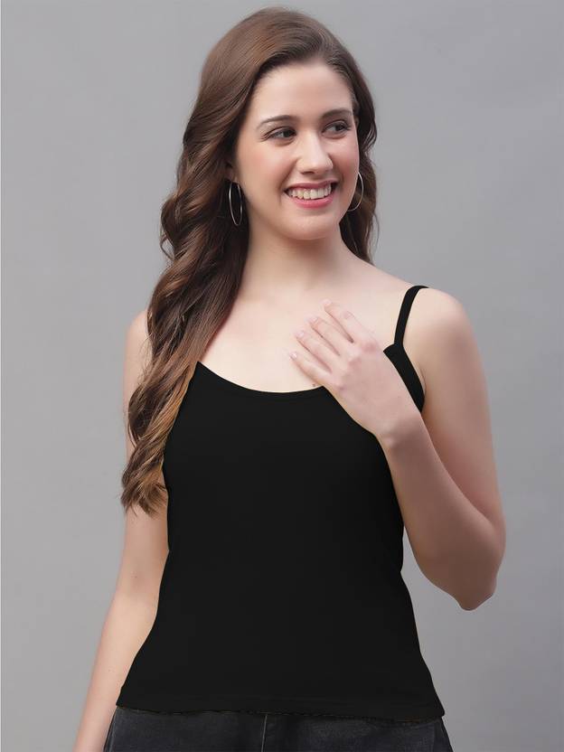 QTEAM WOMEN'S SOLID SLEEVELES CAMISOLE SLIPS