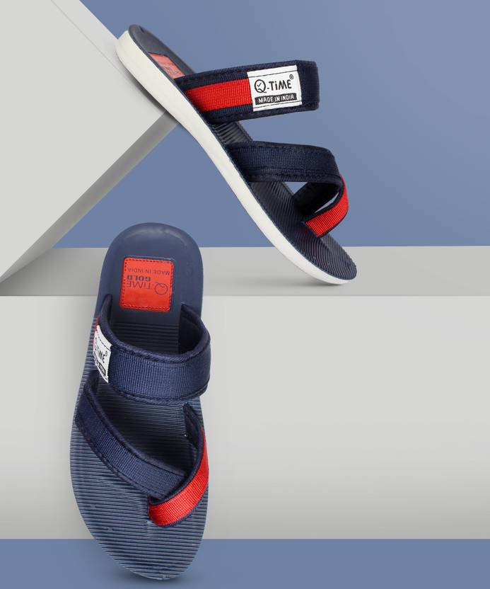 QTIME Men New Trending Fashionable Flip Flop Light & Comfortable Slipper Blue & Red Men Slippers (Navy, Red , 9)