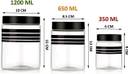Qtrix Plastic Grocery Container - 1200 ml, 650 ml, 350 ml (Pack of 12, Black)