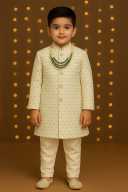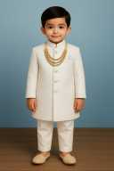 Make your boy look charming and trendy by buying him this western suit set from SUMA RETAIL. Made from silk blend material, this boys ethnic wear set comprises a INDO SHERWANI And Pant. The SHERWANI has Nehru collar, a full button placket that makes your boy look all the more stylish give traditional look. The fit is regular for boys clothing. You can team this set with a pair of mojdis to complete your son's party look. Truly an evergreen outfit, your kid can flaunt this at family functions, traditional occasions and other celebrations. We are a leading brand in Kids wear with wide range of Kids clothing which includes Kids ethnic wear, accessories and a lot more.