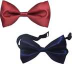 Qtsy Maroon And Navy Blue Bow Solid Men Tie (Pack of 2)