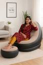 The set includes a matching inflatable ottoman, allowing you to put your feet up and enjoy maximum comfort. Inflation is a breeze – the included electric air pump inflates the chair and ottoman in just 3–4 minutes, while deflation takes only 2–3 minutes for easy storage and transport. With a maximum load capacity of 100 kg, this chair is sturdy enough for everyday use yet light enough to move from room to room.