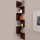WOODEN CORNER WALL SHELVES ZIG ZAG DESIGN BROWN COLOR