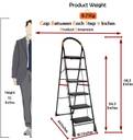 Quantes Black Edition Heavy Duty Folding with Wide 6 Steps Ladder (Made In India) Steel Ladder (With Platform, Hand Rail)