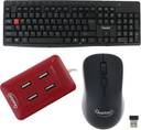 Quantum Hi-Tech QHM 9600 WIRELESS KEYBOARD AND MOUSE COMBO WITH QHM 6633 RED 4 PORT USB HUB Combo Set (Black, Red)
