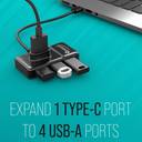QUANTUM QHM7532 4 Port USB Hub with High Speed Data Transfer for Laptop, PC, Type C USB Hub (Black)
