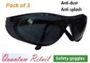 Quantum Retail [QR9-SG-BLACK-PACK-3] Eye Protection Safety Goggles Glasses Anti-Droplets Protective Eyeglass with Clear Polycarbonate Lens - [Pack of 3] QR9-SG-BLACK-PACK-3 Blowtorch, Laboratory, Power Tool, Welding, Wood-working Safety Goggle (Free-size)