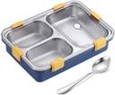 QUAPRO Lunch Box 3 Compartment Leakproof, Stainless Steel, With Spoon + Chopstick 3 Containers Lunch Box (750 ml)