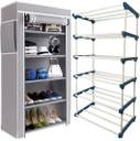 QUARCK 5 Layer Book Shelf Plastic Rack With Cover Wardrobe Portable Multipurpose Plastic Open Book Shelf (Finish Color - Grey, DIY(Do-It-Yourself))
