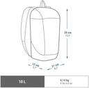 A 10L backpack at an affordable price designed so that you can carry essential items safely on your hikes with gentle slopes. Eco-designed volume -10 Ltr Weight: 145 g Dimensions - 39 x 21 x 12 cm