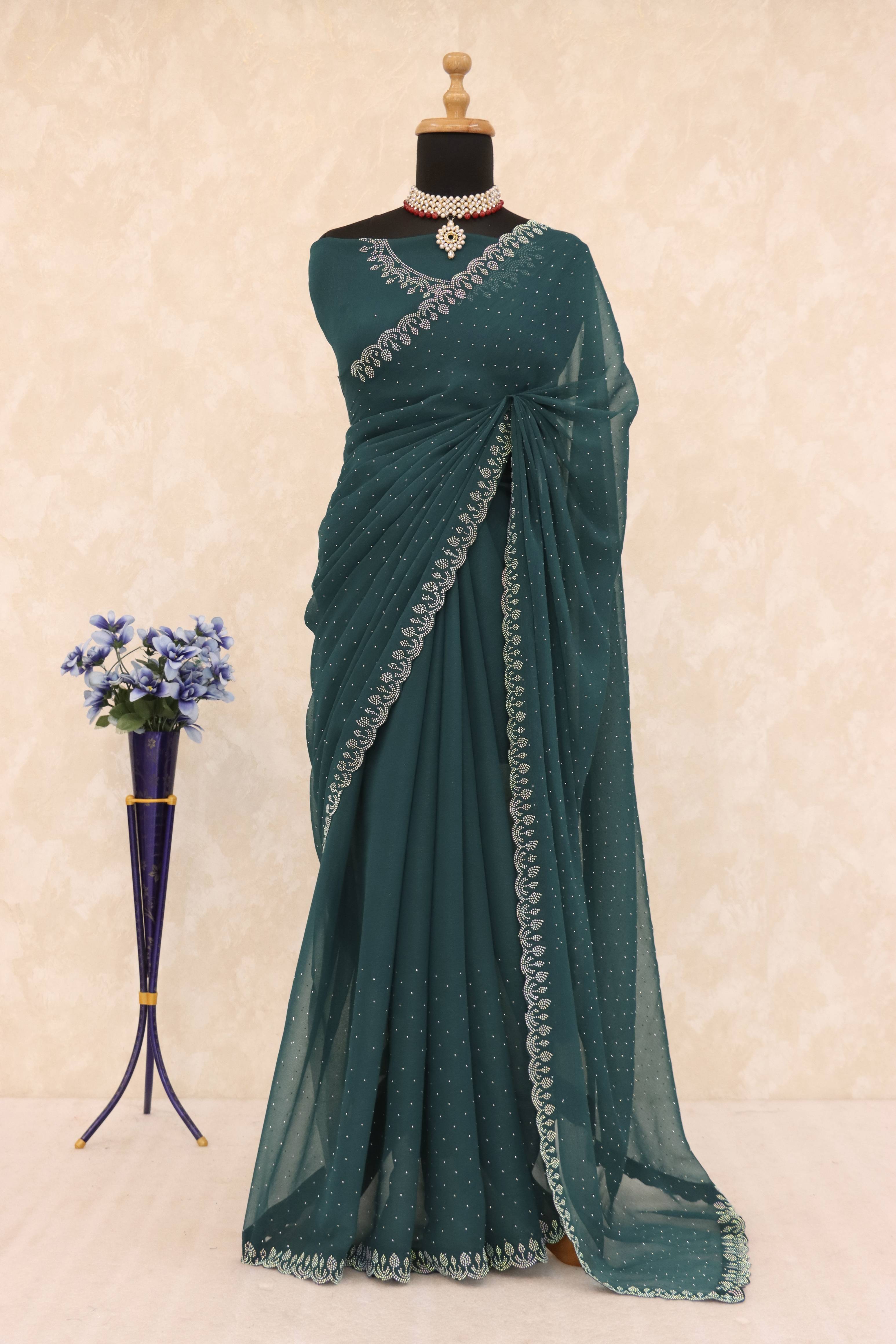 QUEDDY'S Solid/Plain Bollywood Silk Blend Saree (Orange)
