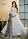Name- Stylish Glamorous Flared Gown (Stitched), Fabric- Chanderi Silk, Sleeve- 3/4 (Unstitched), Pattern-Resham Thread Work Embroidery, Color-Similar to light Grey or Light Silver, Length-Floor Length, Color may differ due to Photographic Lighting Sources