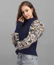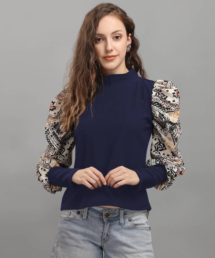 Casual Regular Sleeves Solid Women Dark Blue Top
