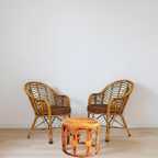 QUEES Cane Table & Chair Set (Finish Color - Brown, Pre-assembled)