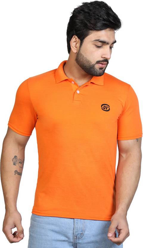 QUER VINTAGE Solid Men Polo Neck Orange T-Shirt