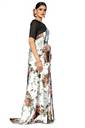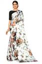 Printed Bollywood Silk Blend, Satin Saree (White, Brown)