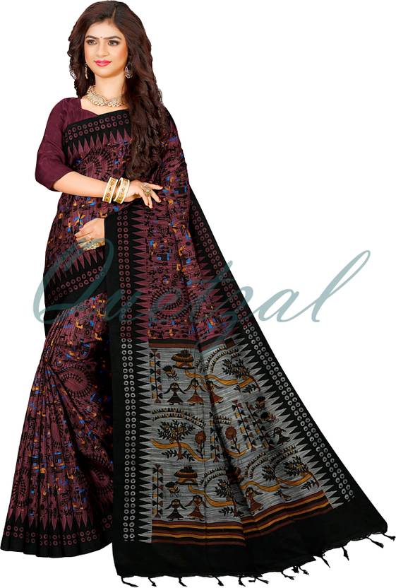 Quetzal Self Design, Printed Madhubani Pure Cotton Saree (Pink)