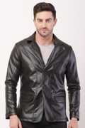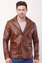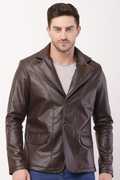 Collar: It has a classic notch lapel collar, giving it the formal structure of a blazer, but the leather material keeps it firmly in the casual-wear category.
