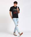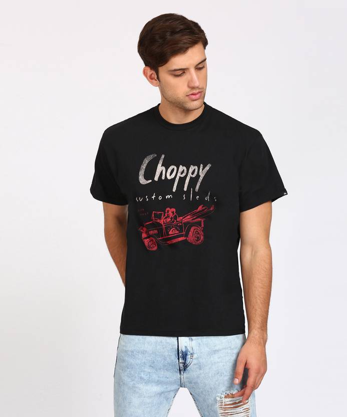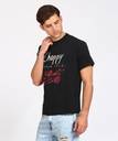 Men Printed Round Neck Cotton Blend Black T-Shirt