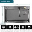 QUINK 30x18x9 Waterfall Kitchen Sink with Integrated Waterfall and Pull Down Faucet Kitchen Sink With Pull-Out Faucet Vessel Sink (SUS 304 DIMOUND BLACK)