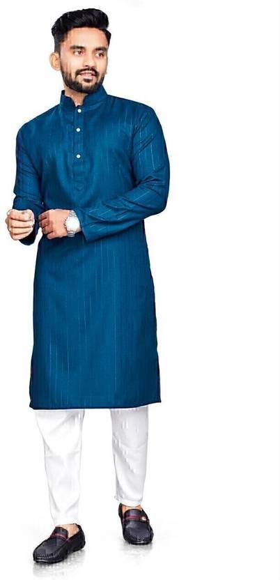 This traditional Indian kurta pajama set includes a top (kurta) with and a bottom (Pajama). Loose fitting sleeves and slits along the sides allow for an easy fit and let air circulate freely through the garment. The pant included in this kurta pajama set has a relaxed fit through the seat and legs for absolute comfort. regular comfortable fitting makes it a great wear.