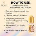 Try our Hyaluronic Acid Mushroom Day Serum for radiant, hydrated, flawless skin. It is an oil-free lightweight serum that provides the necessary hydration and moisturization for your skin, leaving you a refreshing, rejuvenated, and supple feeling all day long. Its Hyaluronic acid content alleviates dry skin and greatly lessens the visibility of wrinkles and fine lines while accelerating damage recovery. It contains no paraben or sulphate and is rich in Antioxidants, Mushroom Extract, DL Panthenol, and Niacinamide, which instantly equalizes the natural traits of your skin and boosts its ability to retain moisture. It is also designed to visibly lessen the fine lines, wrinkles, and all the other signs of early ageing by delivering deep hydration to your skin cells, resulting in smooth, replenished, glowing skin. The Mushroom Extract boosts the efficacy of Hyaluronic Acid and hydrates the epidermal layer or the outer surface of your skin. It also fights acne, pimples, blemishes, black patches, and dullness, making your skin soft and supple.