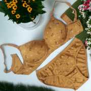 Description : Printed Design Women's Padded, non Wired Full Coverage Pack of 1 Bra and 1 Panties is crafted using the finest soft cotton blend Fabric , ensures all day freedom and comfort for females. It is made of light breathable fabric which provides best comfort and fit.