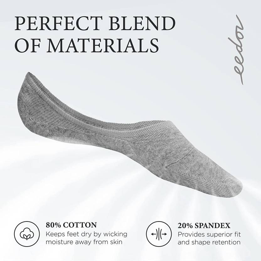The no show socks with anti slip grip on heel for the comfort wear. You'll never have to stop and tug a sock back over your heel.
