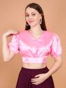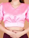 Qunity women blouse style statement with this Crop Top. This versatile Crop Top is made from silk blend fabric, has a V neckline, short sleeves and it comes with smocking on the sides for a comfortable fit Festive, Traditional Events, Party, Ceremony, Evening, Date night, Indian Occasions and also be worn as Blouse pairing with saree or skirt.
