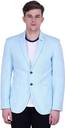 Aqua two tone yarn dyed cotton knitted summer Blazer with two front patch pockets , contrast buttons. It has semi lining in Sublimated Parrot Print.