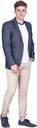 Indigo two tone yarn dyed knitted summer Blazer with three patch pockets and contrast tripe semi lining.