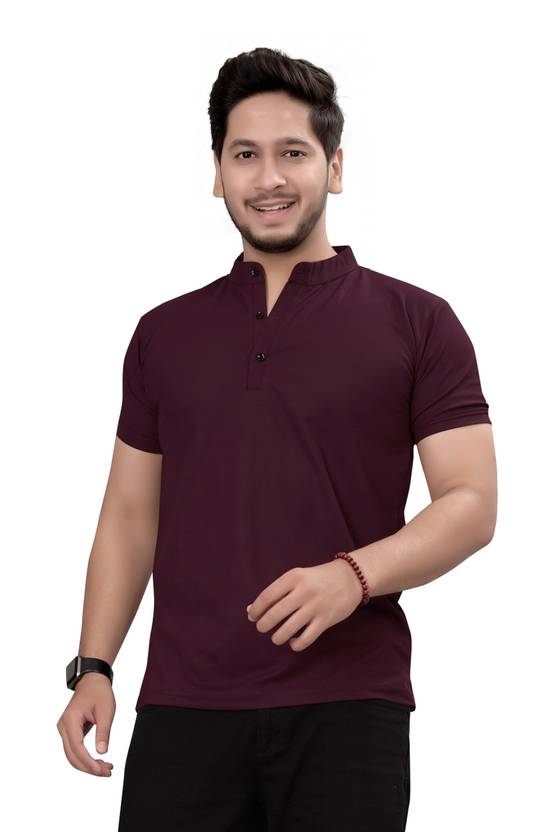 Qugue Men Solid Polo Neck Viscose Rayon Maroon T-Shirt